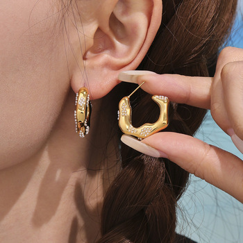 Stile europeo americano alla moda a forma di C con smalto di nicchia Color-blocco in acciaio inossidabile orecchini a cerchio Micro-intarsiato perla per feste
